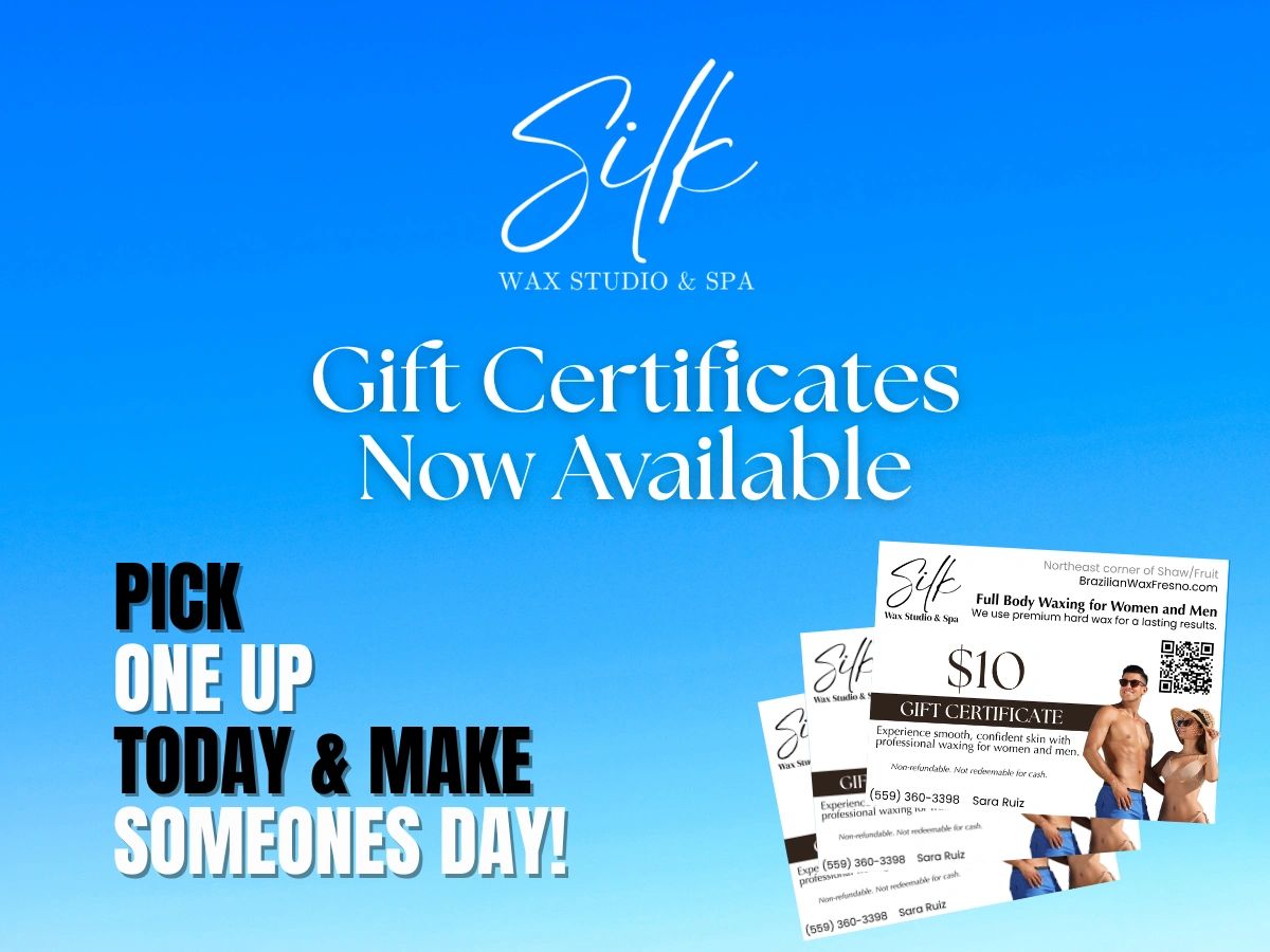Available now at Silk Wax Studio & Spa in Fresno. Pick one up in-studio, contact us to reserve yours. This offer won’t last, so grab your bonus gift certificates while they’re here and share the glow with someone special.